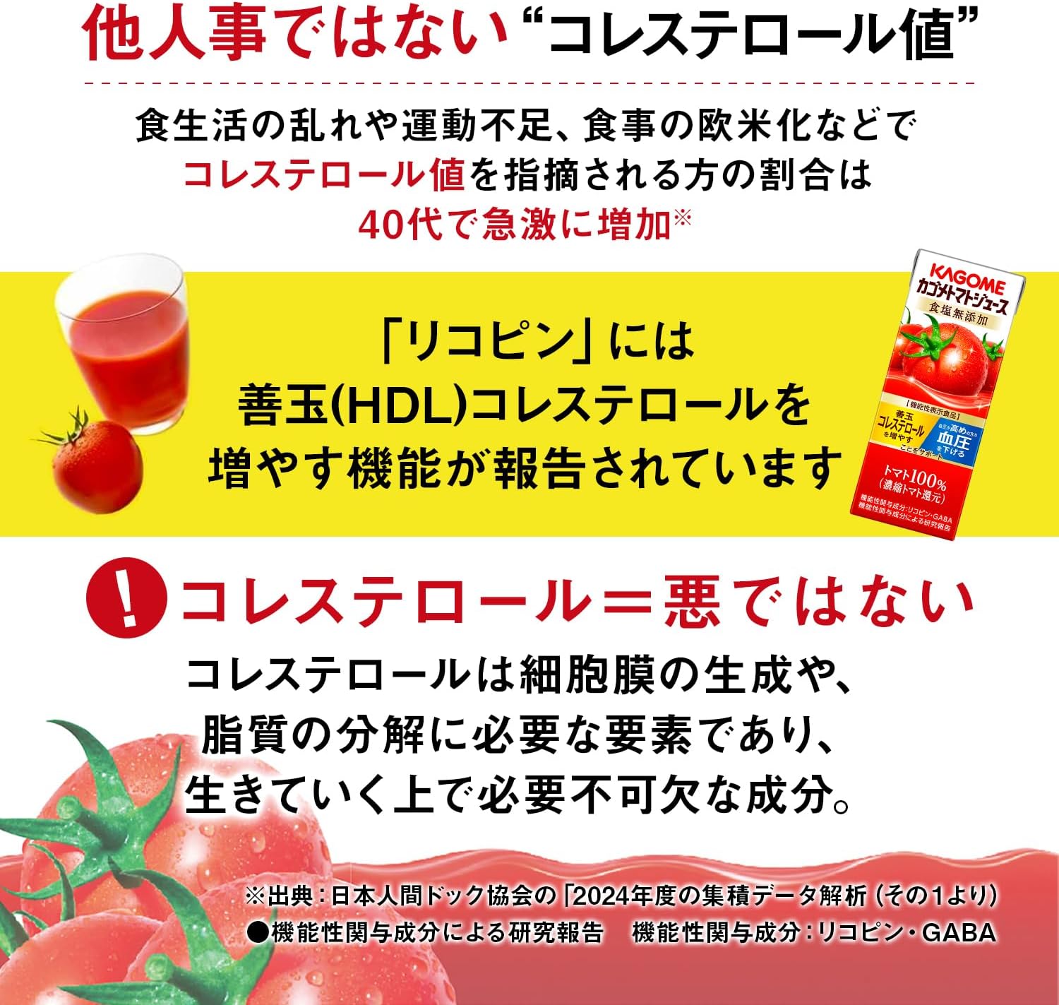 自然の恵みを活かした、まったく新しい血中コレステロール対策が誕生しました。『カゴメトマトジュース』は品質・おいしさそのままに、あなたの健康を支えていきま