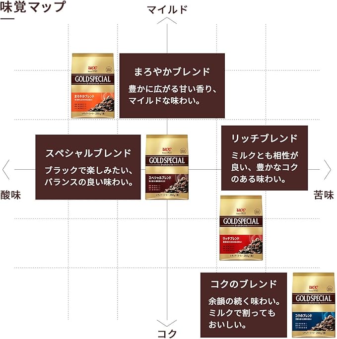 ブレンドで深まる、続く美味しさ。甘い香りと風味豊かなコク。おトクな大袋タイプ。