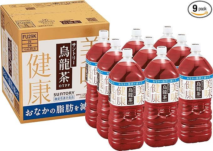 サントリー烏龍茶 機能性表示食品 2L×9本です。ウーロン茶は茶葉を「半発酵」させるという独特のつくり方をしており、その過程で茶葉に含まれるカテキン類が結合(=重合)し、ウーロン茶に特有のポリフェノールが生まれます。これこそが「ウーロン茶重合ポリフェノール」と呼ばれるもので、濃くてさっぱりとした味わいをつくると同時に、単体のカテキンにはなかった別の機能性を発揮します。「ウーロン茶重合ポリフェノール」を食事の際に継続摂取することにより、おなかの脂肪を減らすことが報告されています。。独自のブレンド・製法技術によって、烏龍茶ならではのコクがあるのに、飲み続けても渋みが残らないスッキリとキレのある味わいを実現しています。