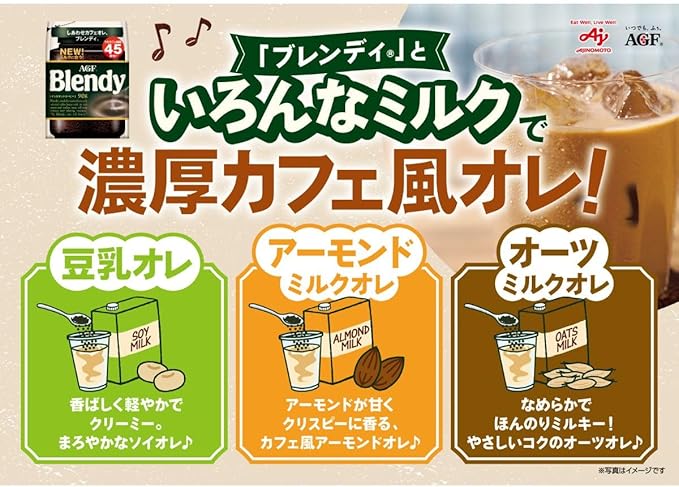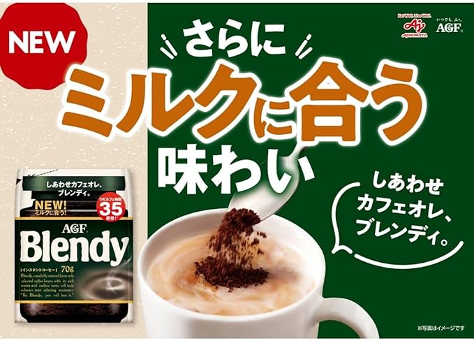 「カフェオレは、得意なんです。ブレンディ。」でおなじみの「Blendy(ブレンディ)」 インスタント・コーヒーは、独自の焙煎技術により、まろやかで豊かなコクと香りが楽しめます。スプレードライ製法にひと手間加えた独自のアグロマート製法の粉末なので、冷たい水や牛乳(ミルク)にも簡単に溶け、ホットはもちろん、アイスコーヒーやアイスカフェオレにも最適です。