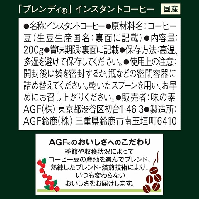 AGF(エージーエフ) 「ブレンディ」 袋200gは、まろやかで豊かなコクと香り。冷たい水や牛乳にもおいしく溶ける、ブレンディ 袋入り詰め替えタイプです。お得な大容量、袋入り詰め替え用(エコパック)タイプ。